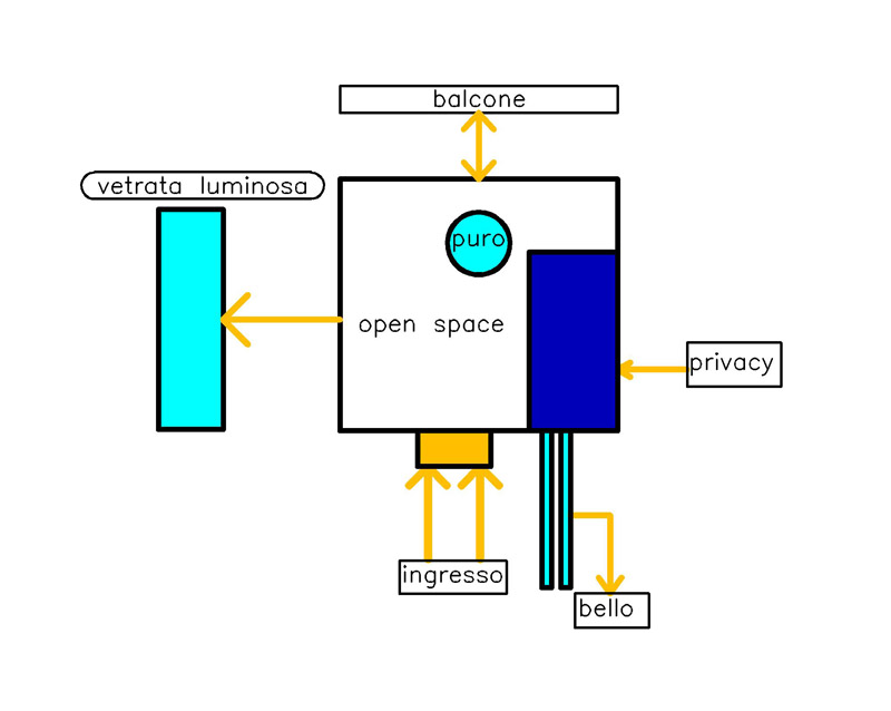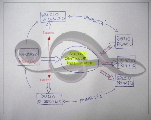 L'ipotesi di collegamento e disposizione dei locali nasce da un legame con gli aggettivi SOTTILE;FUGGITIVO;FASTOSO e da una ispirazione soggettivamente carpita dalla CHIAVE DI VIOLINO (catalizzatore). (500x400) [5065 Hits]